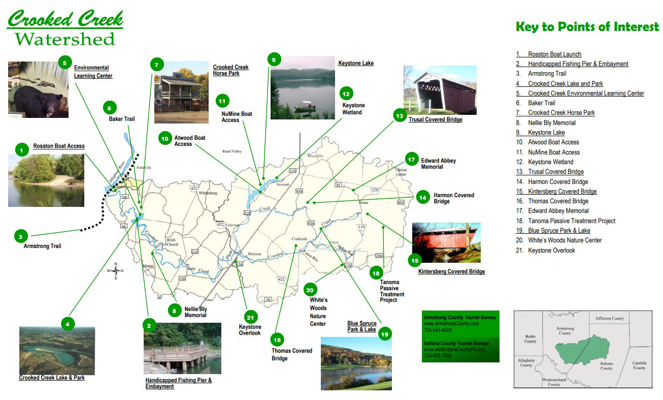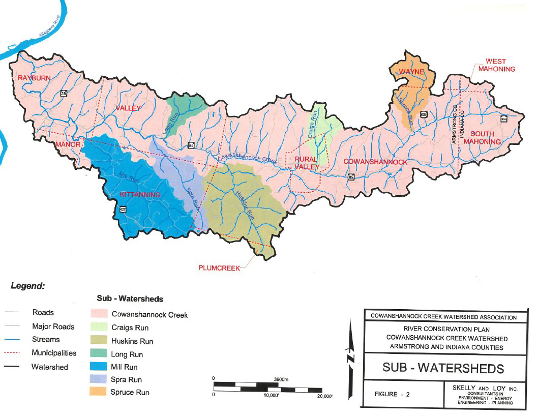 All of Armstrong County is located within the Ohio River Watershed. This means that all of the streams in the county eventually flow into the Allegheny River and then into the Ohio River. The Ohio River Watershed can be divided into smaller sub-watersheds. | |